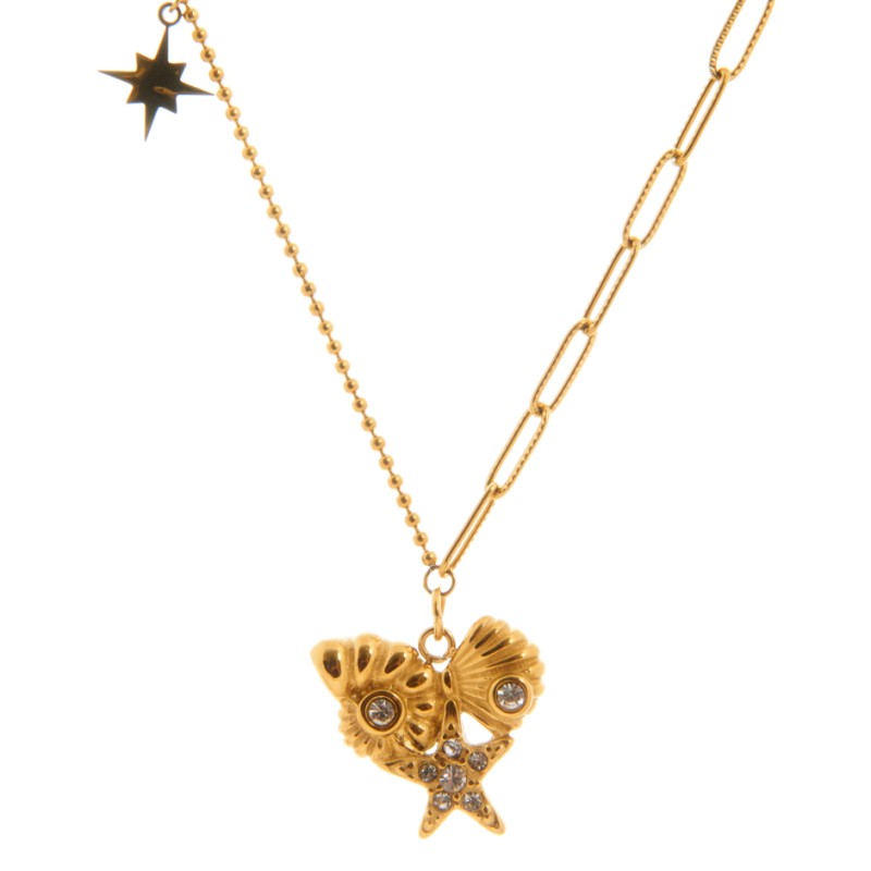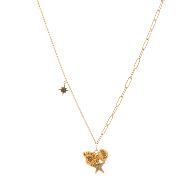 Colgante formado por pieza de una estrella de mar, caracola y concha unidas