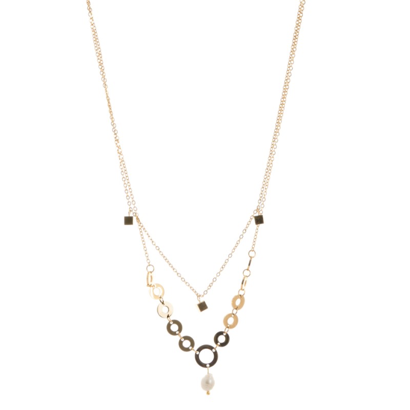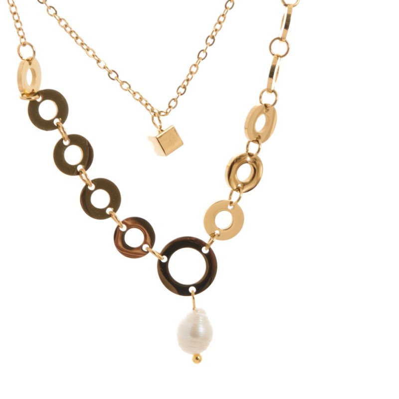 Colgante de acero plateado con doble cadena y perlita