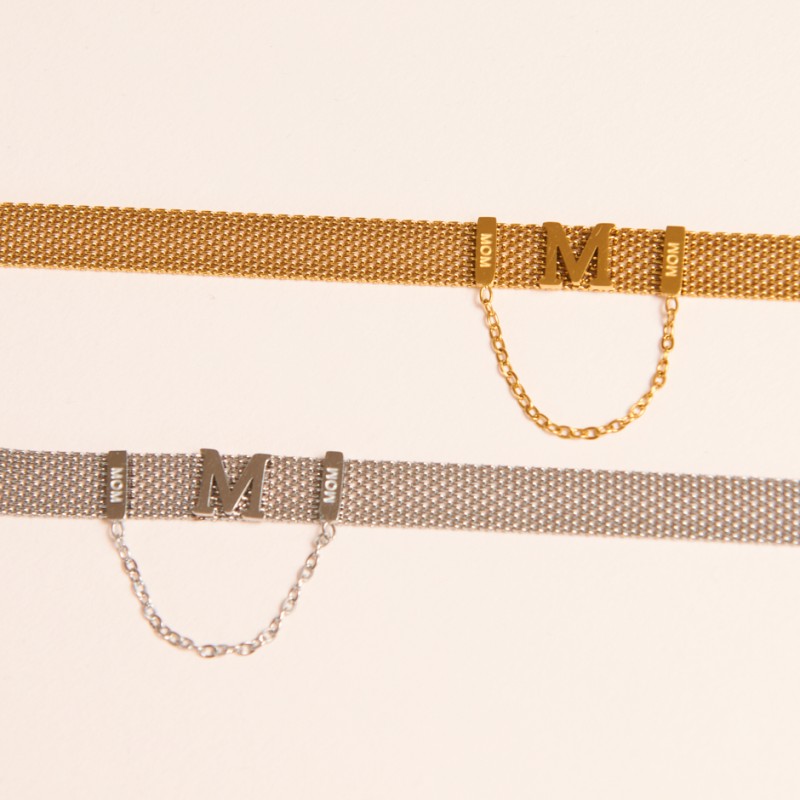 Collar dorado de cadena plana con letras mum. Regalo especial para mamá