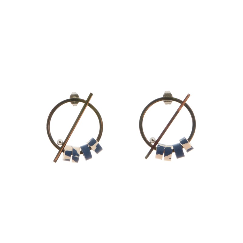 Pendiente Origen. Inspiración: Círculo en movimiento, lo esencial. Pendiente circular con pieza vertical y bolitas.