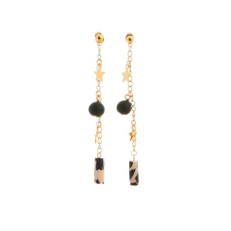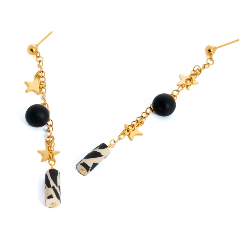 Pendiente Estelar. Inspirado en las estrellas, en la luz que aportan. Pendiente con base en forma de bolita mini y cadenita con charms estrellas y bolitas.