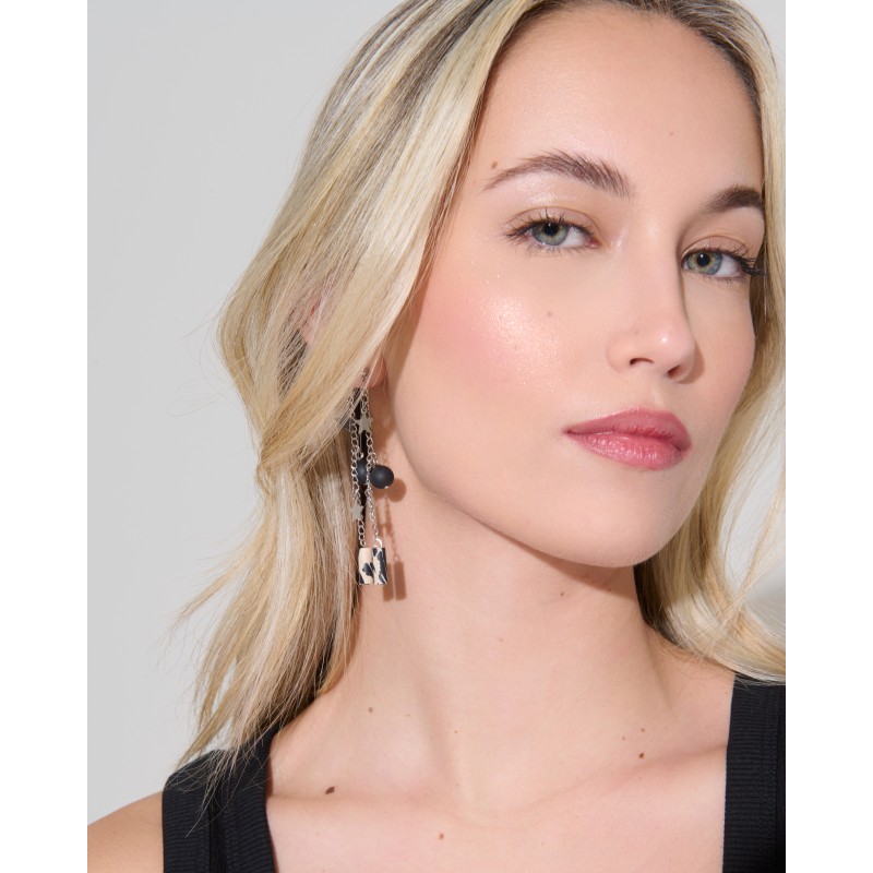 Pendiente Estelar. Inspirado en las estrellas, en la luz que aportan. Pendiente con base en forma de bolita mini y cadenita con charms estrellas y bolitas.