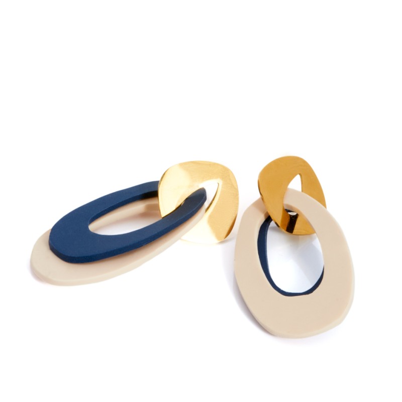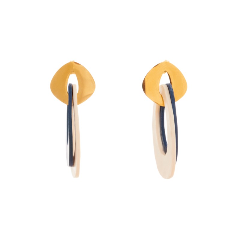 Pendiente Eclipse. Inspirado en la luz y en la sombra, similar a un eclipse de sol. Base irregular y pieza ovalada.