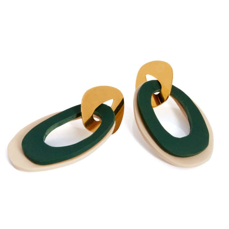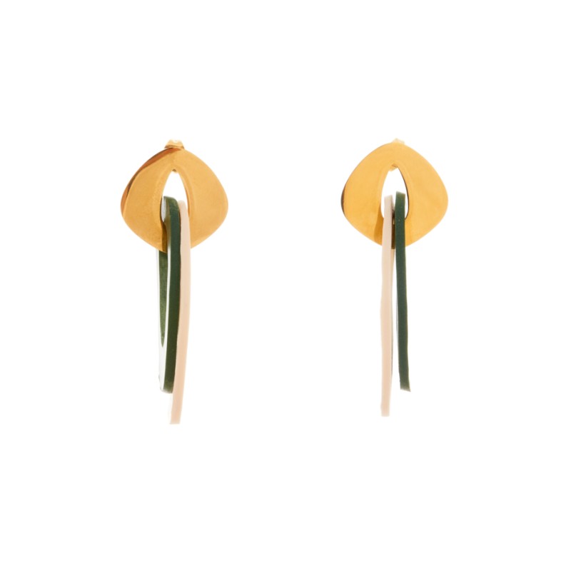 Pendiente Eclipse. Inspirado en la luz y en la sombra, similar a un eclipse de sol. Base irregular y pieza ovalada.