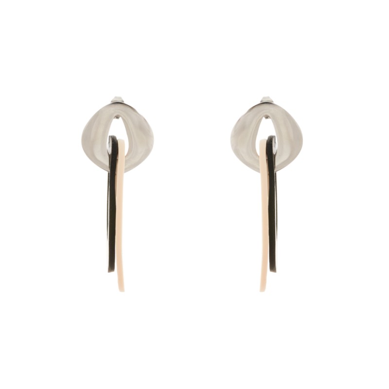 Pendiente Eclipse. Inspirado en la luz y en la sombra, similar a un eclipse de sol. Base irregular y pieza ovalada.