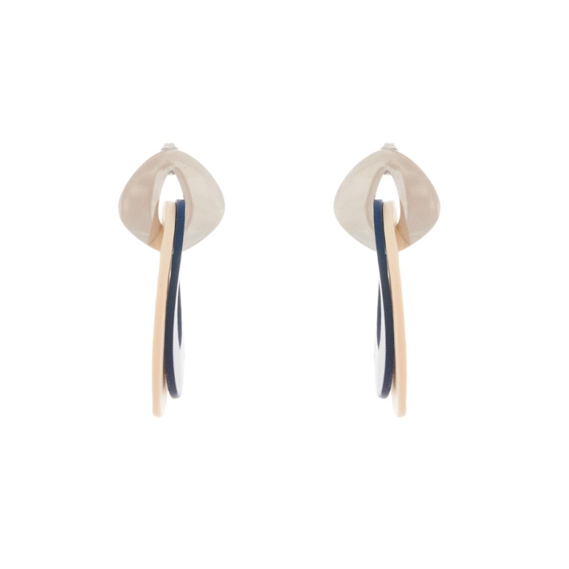 Pendiente Eclipse. Inspirado en la luz y en la sombra, similar a un eclipse de sol. Base irregular y pieza ovalada.