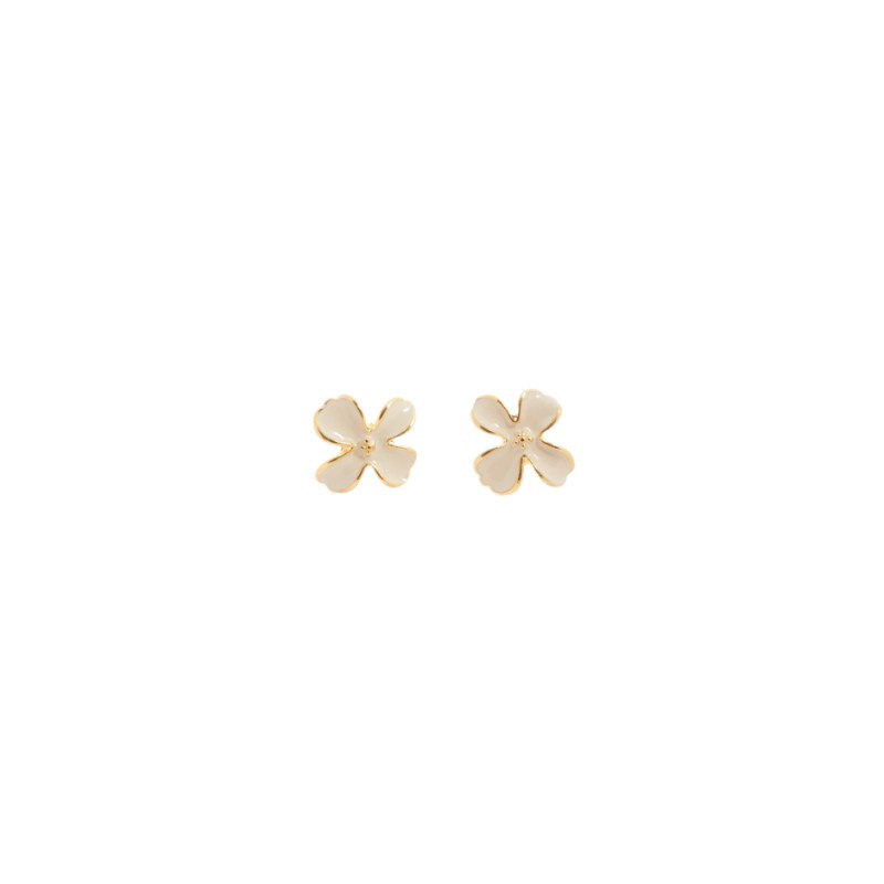 Pendiente esmaltado en tono beige y forma de flor trébol