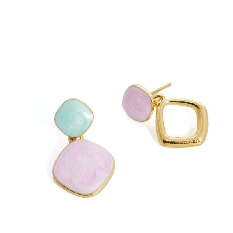 Pendiente esmaltado con forma irregular en tono malva