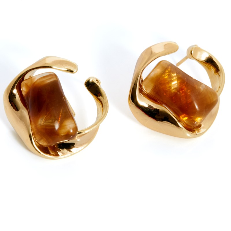 Pendiente tamaño mini con forma irregular en tono dorado y marrón