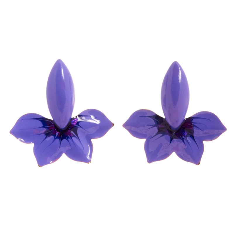 Pendiente esmaltado con forma de flor de lis en tono morado