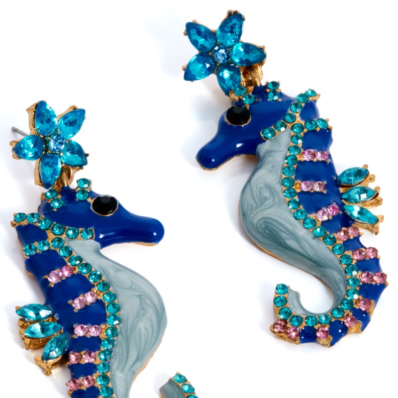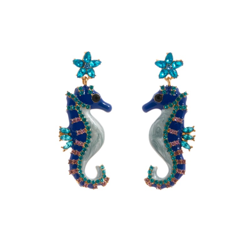 Pendiente con forma de caballito de mar esmaltado y con strass