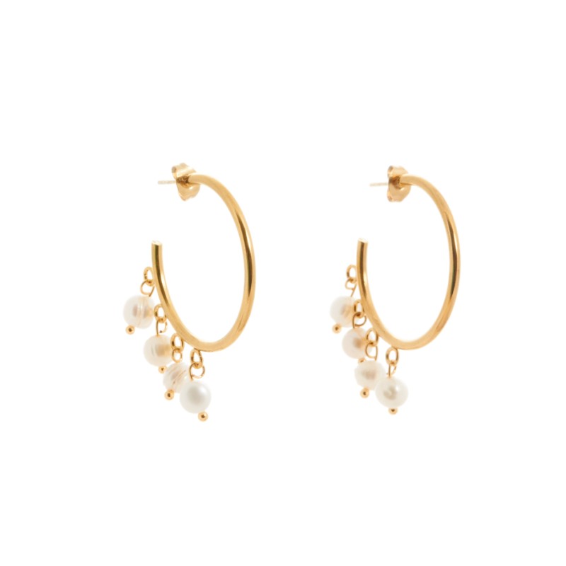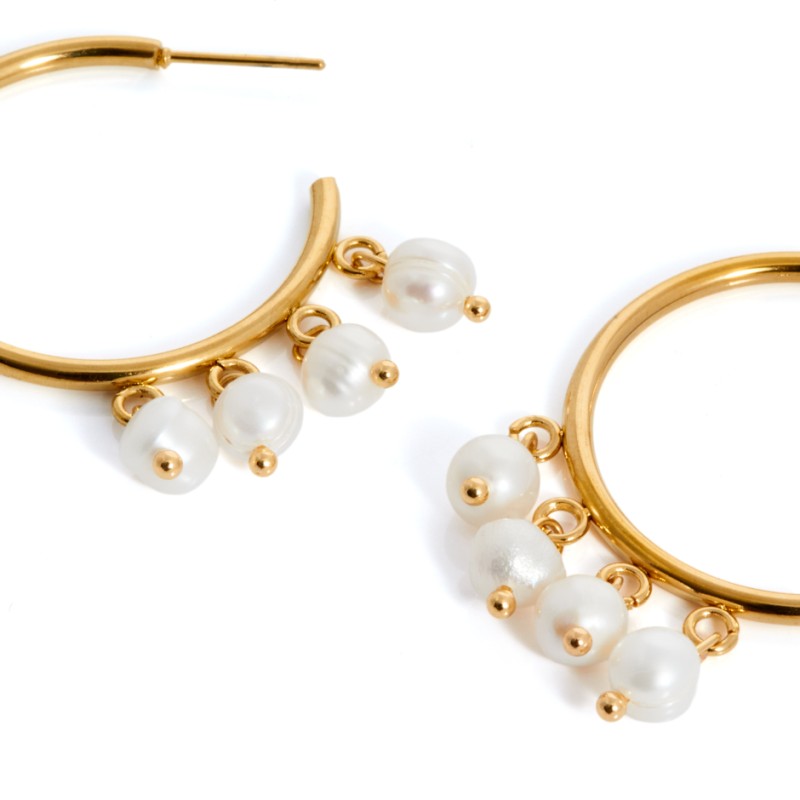 Pendiente de aro dorado con cuatro perlitas colgantes