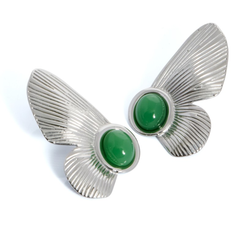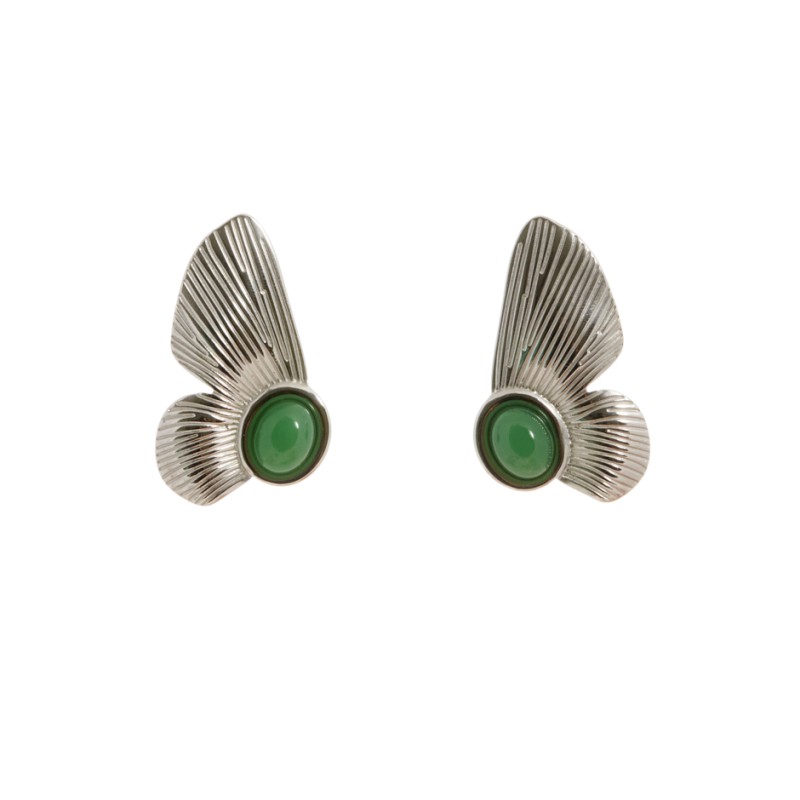 Pendiente con forma de hojas en color plateado y pieza circular en verde