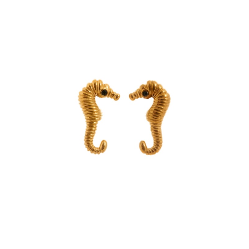 Pendiente con forma de caballito de mar en color dorado