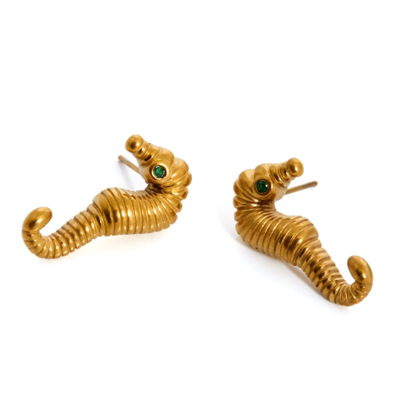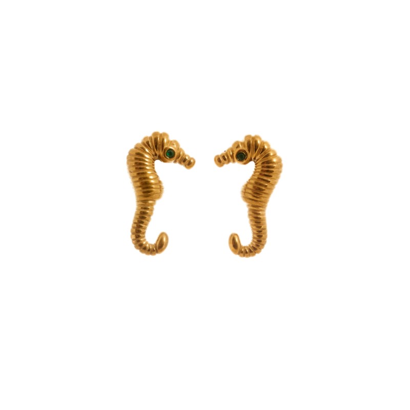 Pendiente con forma de caballito de mar en color dorado