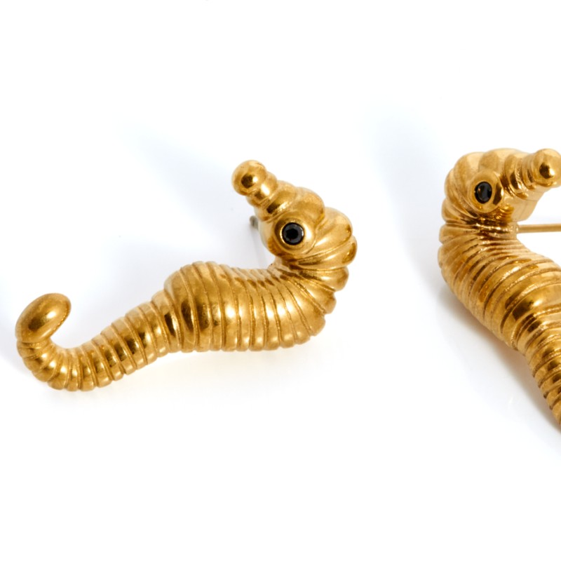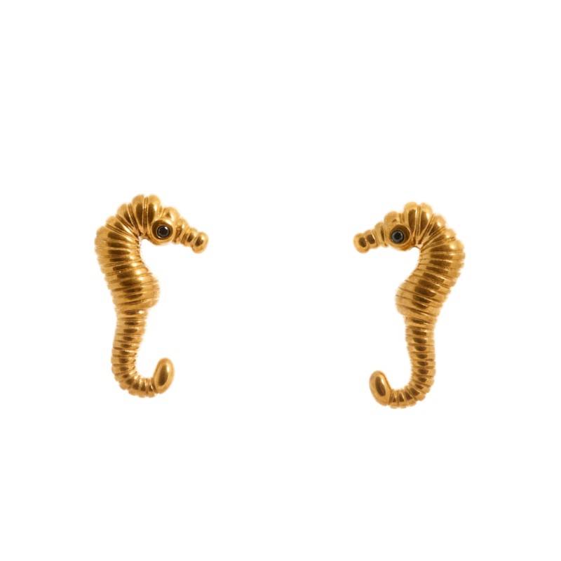 Pendiente con forma de caballito de mar en color dorado