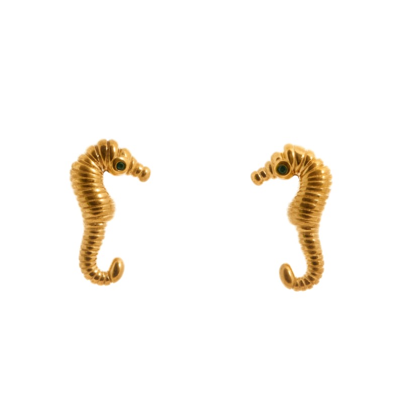 Pendiente con forma de caballito de mar en color dorado