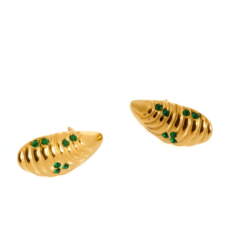 Pendiente mykonos mejillón mini dorado y verde