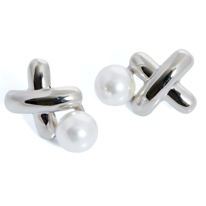 Pendiente con base en forma de cruz y perlita circular