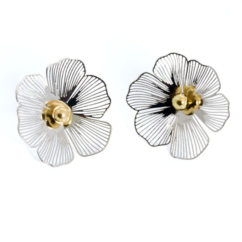 Pendiente flor pétalos plateada