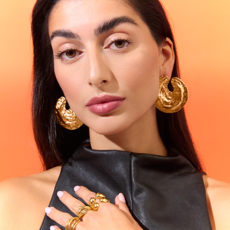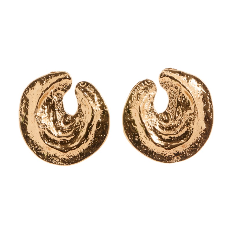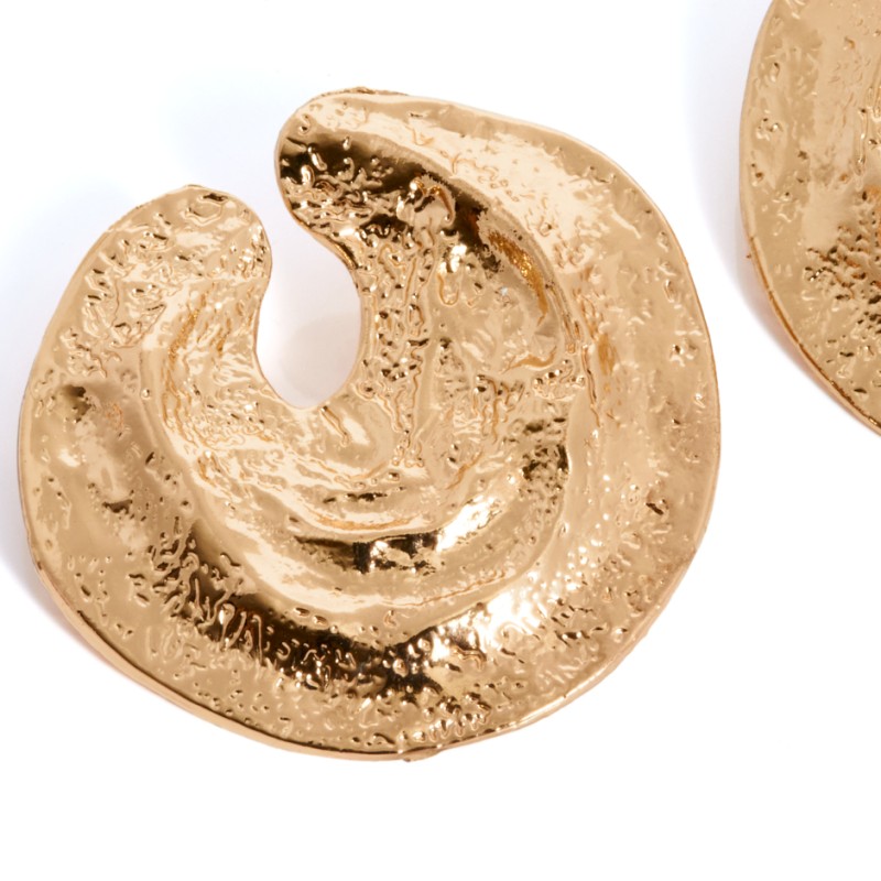 Pendiente con forma circular tipo placa redonda y superficie labrada irregular