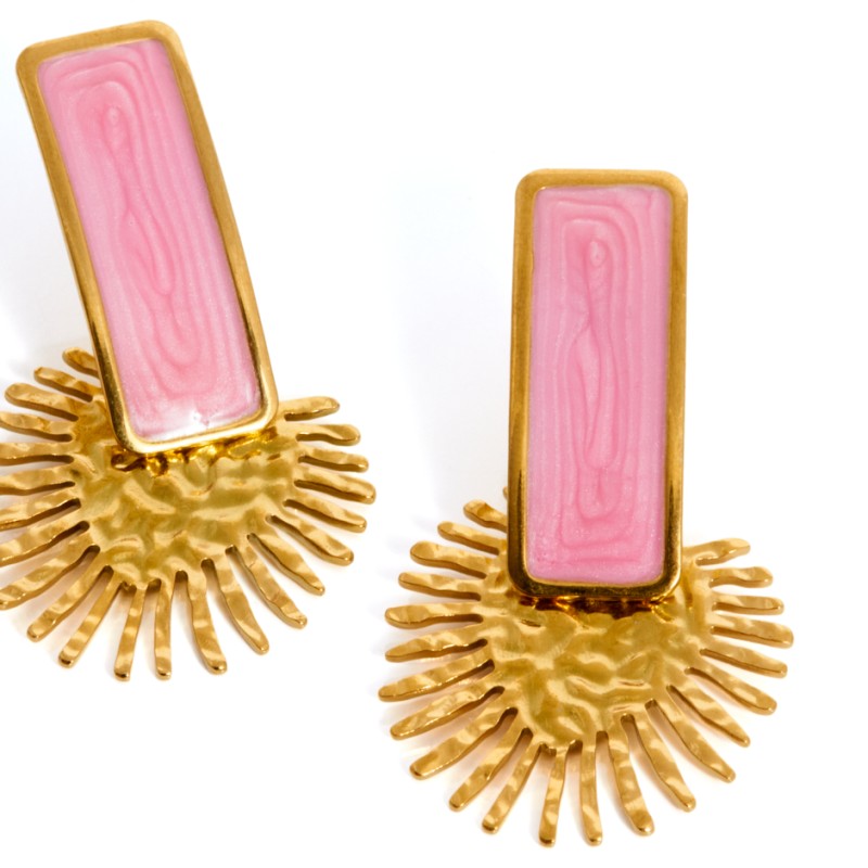 Pendiente con base rectangular esmaltada y pieza circular irregular