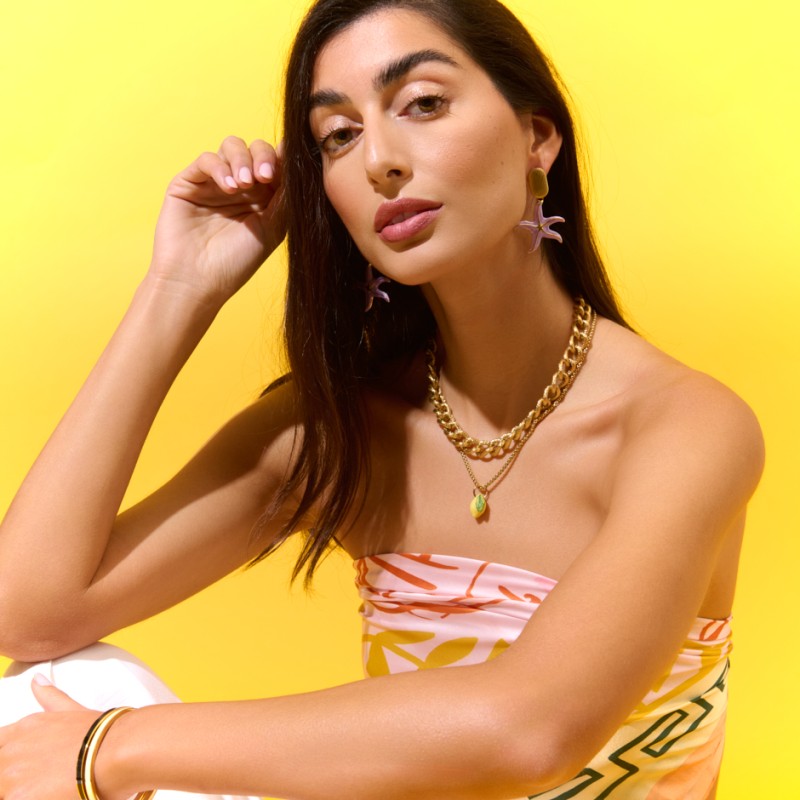 Pendiente con base dorada y estrella en color esmaltado