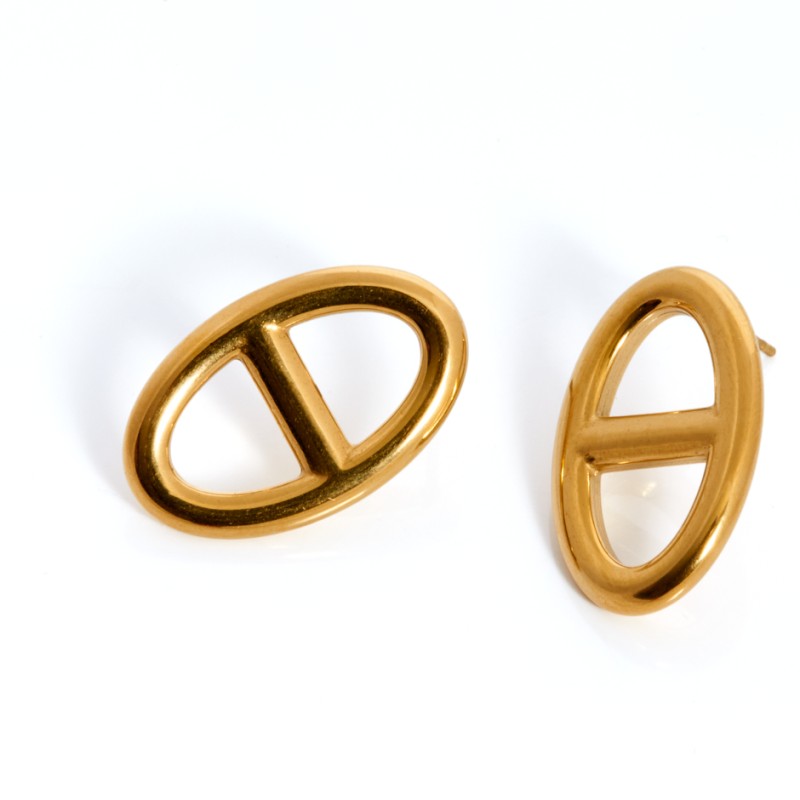 Pendiente de acero en color dorado con forma de hebilla